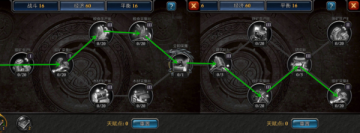天赋选取:如下图(采集是按个人需要进行点取,此天赋按绿色箭头所示点为最佳,粮食为后期升堡消耗最多材料。)