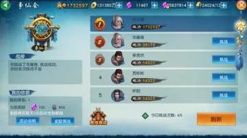 争仙会刷新对手列表后,可选择挑战对手,挑战成功获得对手的名次,挑战失败名次不变,“奖励预览”可查看所有名次的具体奖励,每天的名次奖励会在当前发放,奖励获得的竞技币可在竞技商店购买修仙物品。