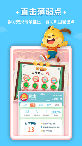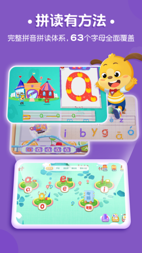 根据拼音字母特色设计丰富的创意交互场景,反复记忆字形对应读音,高效学习。
