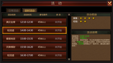 首先说说【轮回道】,分别为天道、人道、阿修罗、地狱道、饿鬼道、畜生道,每2个小时开放一次,每次持续时间为30分钟,轮到道中boss击杀完之后需要等到15分钟才会刷新。玩家40级以上可参加该活动,活动开始之后,玩家可传入到轮回台,在轮回台中,玩家将被随机传送到六道中的任意一道,玩家每次从传送点传出时都随机到其他轮回道中。