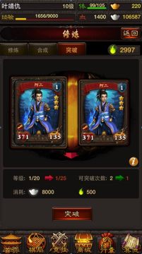 同时还要银两真气这两个万年消耗品。而且每突破一次,卡牌可以突破的次数就减少一次。但是,好在突破是不会失败的。这样也保证了收集到的卡牌,就必定能突破上去!
