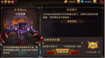 既然只需要猛烈地输出,自然不用去考虑带上防御型或治疗型的英雄了。但是要注意的一点是,大罗金池中每天的boss是不同的,有的自带超高的魔法防御,有的则有惊人的物理防御。硬碰硬是划不来的,玩家们可以根据boss的属性来选择合适的英雄出阵,以便打出最高伤害。