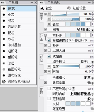 1.抖动修正可以自动在线条上加入出笔和收笔时的笔锋。可以在很大范围内修正数位板的抖动。具备下笔前补正功能。并且可以对已经画出的线条惊醒抖动修正。