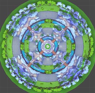 丛林决战中,共有四个橙、黄、蓝、紫四个队伍,每个队伍的领地里有自己的图腾柱,结算时图腾柱等级最高的队伍获胜。野区里分布着两种野怪:可以掉落生命种子的菲菲、可以掉落血瓶和经验块的波波。四支队伍在圆形地图上通过拾取生命种子、击毁对方队伍图腾柱、击杀敌人等竞争方式,以快速发育和提高自己队伍的图腾柱等级,最终获得胜利。