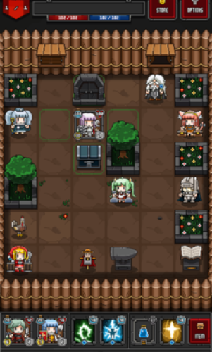 游戏中我们每完成一个区域的战斗就可以返回村庄,在村子中有三个妹子NPC,左上角的妹子是属性强化NPC,我们可以在她这里强化属性。