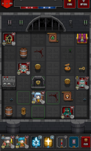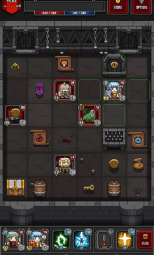 进入游戏后我们可以看到自己在一个房间内,地板上有一格一格的方格,这些方格都是我们行走和攻击的距离。首先我们来到房间中石门前,然后点击石门就能传送到副本中。