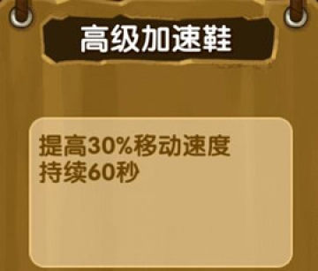 2.高级加速鞋,在游戏中玩家们使用了这些鞋子之后就可以在短时间内提高自己的移动速度了,但是道具持续的效果只有60秒,玩家们在前进的时候遇到一些远程的敌人就可以使用这个道具来追上他们了。