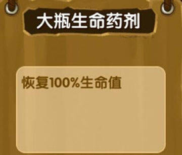 1.大瓶生命药剂,这个生命药剂玩家们购买之后可以在过关的时候敌人对自己造成比较大的伤害,或者是角色的血量剩下的不多的时候使用的,在使用之后玩家们可以获得比较多的生命回复。