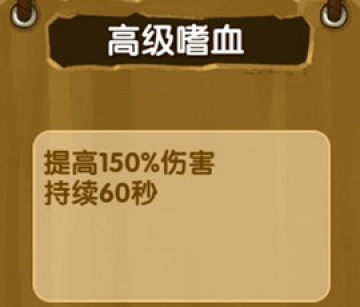 3.高级嗜血,这个道具玩家们使用了之后就可以在战斗的时候短时间内获得伤害的提高,基本上使用之后玩家们的武器伤害可以提高到150%,并且持续60秒的时间,这个还是很重要的玩家们要注意了。