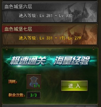 3、进入次数;每人有3次进入次数;VIP玩家可额外购买2次;