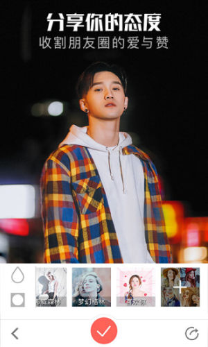 想要自拍脱颖而出?照片编辑区,旋转、裁剪、增强等功能让你简约而不简单,更有装帧新玩法,多种潮流杂志风边框给你的自拍加足料,展示你的个性style!