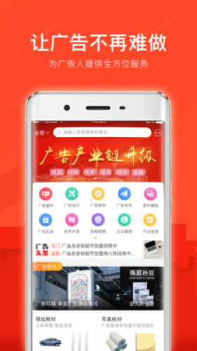 涵盖了广告器材、设计、制作、发布、素材模板、广告礼品、广告需求收集及匹配、行业交流、技术服务、企业服务和广告金融等,并依托广告商学院为广告人提供专业的技能和企业培训。