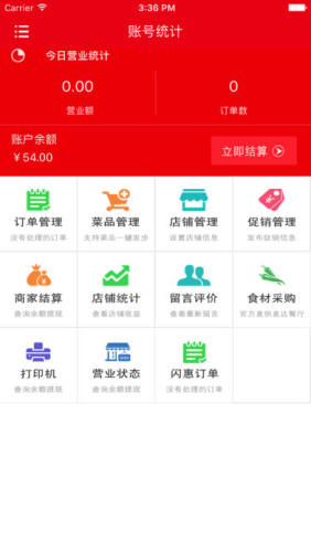 接受并处理用户订单,处理退款,账户在线结算,管理后街外卖的门店,随时调整营业信息、商品库存等。