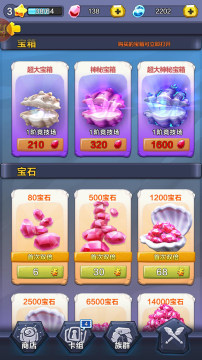 5. 资源:宝石、贝壳。宝石可以用钱买,也可以在开箱和任务中获得。宝石能买箱子、秒开箱子、换贝壳。贝壳可以用宝石换、开箱子获得、捐卡获得。贝壳能买卡片、升级卡片。