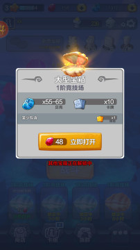 4. 箱子:对战模式下获得中型箱子(3小时开一个)、大箱子(8小时开一个)、紫箱子(12小时开一个)。免费的箱子,4小时开一次,最多累计2个。开箱子获得金钱和卡片或贝壳。