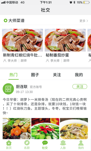 厨连联是一个大型的餐饮社区。聚集了大量的餐饮人。厨师招聘、食材调料直供,让厨师用上更好的设备。菜系的发展、技能的传承。感兴趣的朋友快来下载体验吧。
