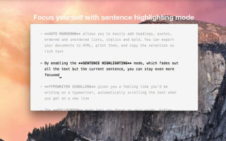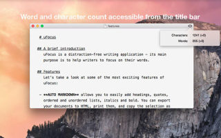 uFocus Mac版是一款Mac平台上纯文本编辑器,没有过多的功能,让你可以专注于文本的输入。uFocus Mac版支持 MarkDown 语言,可以使用 iCloud 进行自动保存和版本控制。还有一个比较有趣的地方是你可以设置无法对文本内容进行删除或者替换。