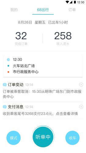 68出行司机端app,专为旗下司机们打造的接单软件,在此高效接收客户订单,智能化推荐适合您,让您效果更多的订单,帮助您不空车,始终处于满载状态。