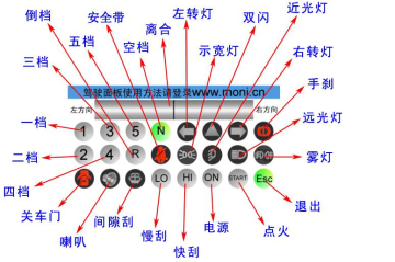 新手教学为在一片开阔地场景内,让新用户了解软件里面所有按键的操作与作用。从如何关车门、系安全带、开电源、打左转向灯、鸣喇叭、踩离合器、挂1档、松手刹、松离合器、关闭左转向灯整个起步过程到如何转动方向盘、切换视点等。用户需要按照提示跟着手标志操作才会进行下一步操作。