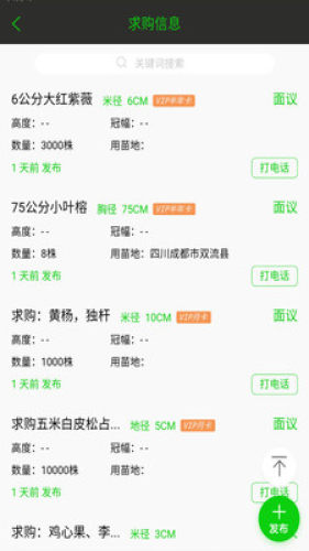 可发布自己的苗木信息,支持图片、小视频和文字,您可以图文并茂描述苗木的特性、规格、价格等,以便苗木需求方发现您的苗木并与您取得联系。