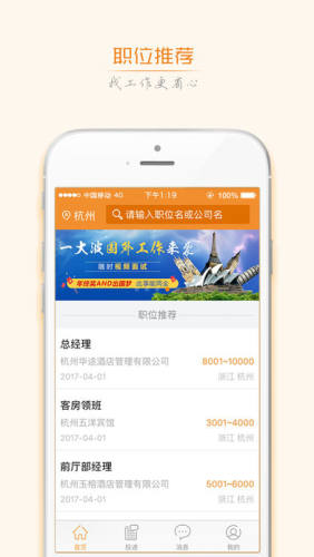 最佳东方集成了最新职位信息,实时更新旅游、酒店、餐饮行业专场招聘会信息,目前已覆盖上海、北京、广州、深圳、成都、重庆、杭州、南京、沈阳、苏州、天津、武汉、西安、长沙、大连、济南、宁波、青岛、无锡、厦门、郑州、长春、常州、哈尔滨、福州、昆明、合肥、东莞、石家庄、呼和浩特、南昌、温州、佛山、贵阳、南宁、海口、湖州、唐山、临沂、嘉兴、绍兴、南通、徐州、泉州、太原、烟台、乌鲁木齐、潍坊、珠海、洛阳、中山、兰州、金华、淮安、吉林、威海、淄博、银川、扬州、芜湖、盐城、宜昌、西宁、襄阳、绵阳、惠州、大庆等全国多个城市地区,贴心实用,轻松实现随时随地找工作。