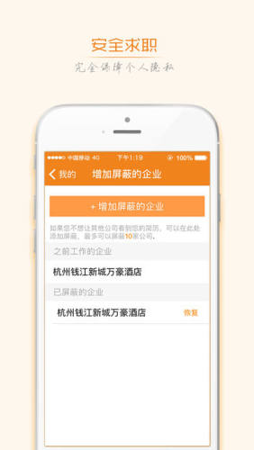 【安全求职】企业审核严格,设有企业屏蔽功能,完全保障您的个人隐私
