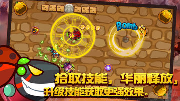 《战虫争霸》是以自然昆虫为背景的休闲动作单机,新颖的操作方式,需要一点微操,根据旋转的方向来躲避和进攻,把敌方的虫子撞出战场获得最终胜利。