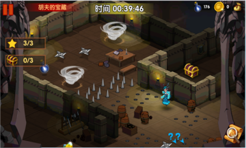 在此关卡中,玩家的生命为本次派遣的所有英雄的星级之和,如果不慎碰到了陷阱则会消耗2个星,所有星星消耗完毕后死亡,结算物品退出关卡。如果1分钟内没有拿完3个宝箱,则结算物品退出关卡。