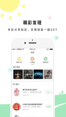 【多彩发现,惊喜不断】问答广场,万答圈,讲座,多彩的问答领域分类,多样的知识学习方式,寻找人生方向、踢走追梦绊脚石、聆听名师专家的教诲、结交知己。多彩发现,收获知识的同时,收获你的人脉和追梦奋斗的激励.