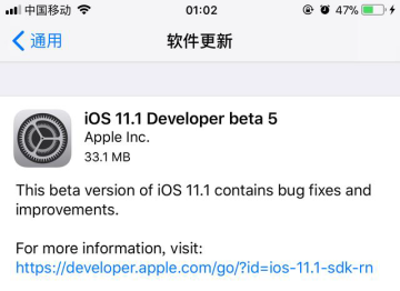 最新ios11.1beta5开发者测试版描述文件下载,此次ios11.1beta5优化了系统的流畅性和稳定性。以及修复了一些bug,非常值得更新!