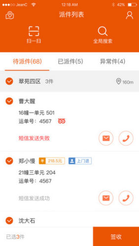 轻松在手机上实现地图导航、路径规划、联系买家、短信模板、实时签收、异常反馈、运单搜索,轨迹查询等功能,而管理者则能轻松实时监控配送的各个环节。