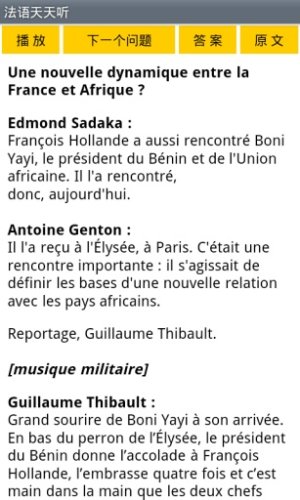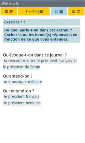 是练习法语的必备软件。系统同时提供在线更新功能,每天提供一个新的新闻题材。