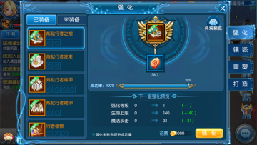 Ø使用强化石对装备进行强化,可提升装备基础属性,强化等位1-16级