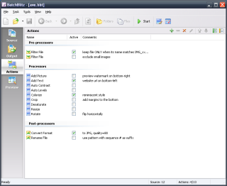 操作允许您过滤源文件(例如,使用正则表达式)、重命名和转换图像,以及添加水印、调整大小/旋转画布、应用自动颜色修正等。即时预览会让您更好地了解实际效果。