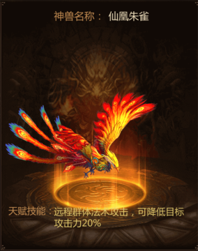 形态说明:可召唤上古神兽仙凰朱雀,远程群体攻击范围内的敌人