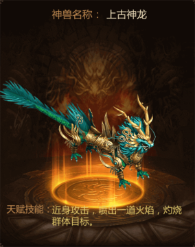 形态说明:可召唤上古神龙,远程攻击,群体扇形攻击前方敌人