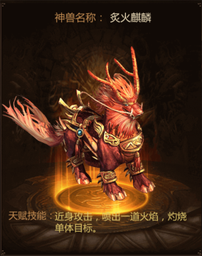 形态说明:可召唤炙火麒麟,口吞炙火远程攻击敌人
