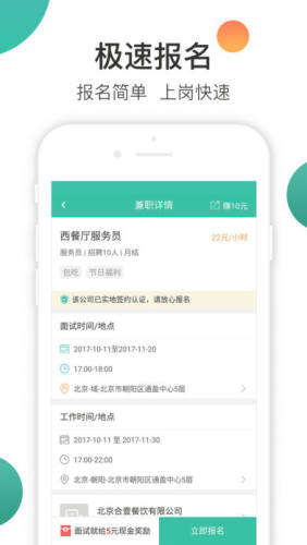 企业招兼职招服务员,首选小劳招聘,为企业提供求职者面试服务,满足企业一站式招聘与管理需求。