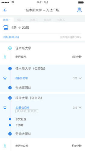 5、路线规划:提供多种换乘方案,选择优选方案抵达目的地。