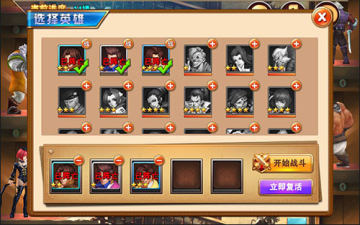 战斗时,英雄出场时按照选择英雄顺序出战,每阵亡一名英雄,则由下一位英雄继续挑战,直至全部阵亡。当英雄全部阵亡时,挑战结束,若想继续挑战,可使花费钻石将阵亡的英雄们复活。每天可复活一次或等待第二天英雄自动复活。