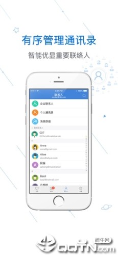 - 智能突显常用联系人,自动记录往来联系人,同步企业邮箱组织架构。
