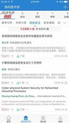 - 我的图书馆,用户能够根据自己的偏好 ,重视学科、作者、期刊的最新动态,也能够定制杂乱的检索式。