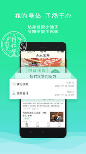 同仁堂旗下同仁堂养生宝典,新中医健康养生生活方式,博大的同仁堂中医算法,背靠百年制药工艺,为个人提供专业的养生、调理的定制化解决方案。
