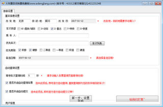 火车票自动抢票是一款针对12306火车票春节抢票的软件!设定好各个参数数,即可进行自动抢票,自动提交等!只需一台电脑即可,即可自动下单。