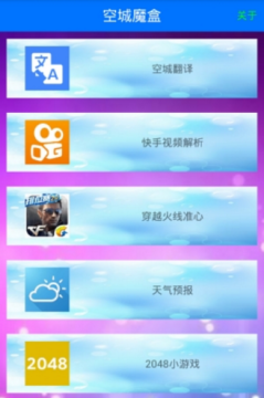 空城魔盒软件,一款非常实用的手机万能工具箱应用。软件内含手机翻译、穿越火线准心辅助、快手视频解析、编码转换等多种功能,轻松一键解锁,海量功能任你体验。