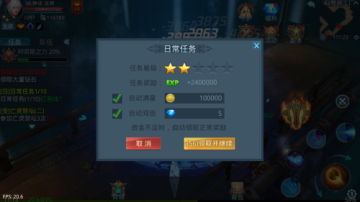 在每做完一环日常任务后会有完成任务提示,玩家可选择是否自动满星、使用钻石自动双倍奖励。