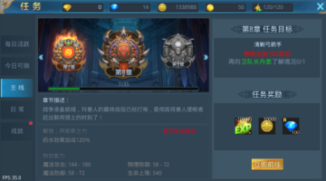在做主线任务的过程中会开启重要的玩法和功能,每个主线任务都会有对应的章节,通过头像下方的任务面板可以看到当前任务章节进度,每完成一个章节都会获得角色属性加成。