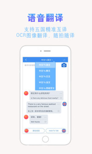 ***语音翻译支持英、日、韩、法、西5种语言互译