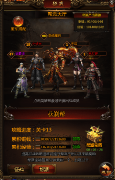 玩家拥有帮派后,自身将成为帮主,这时候可以招募最多4个英雄来扮演你的帮派成员玩家自身将扮演帮派领主,通过带领自己的帮众征战传奇中各个著名的帮派,是教主之家非常创新的角色扮演设定。