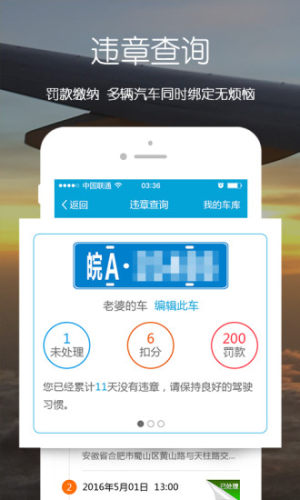支持安徽合肥、六安、芜湖、蚌埠、黄山等16个城市违章查询、路况查询服务,是手机直接交罚款处理违章的专业级APP,银联提供支付保证!